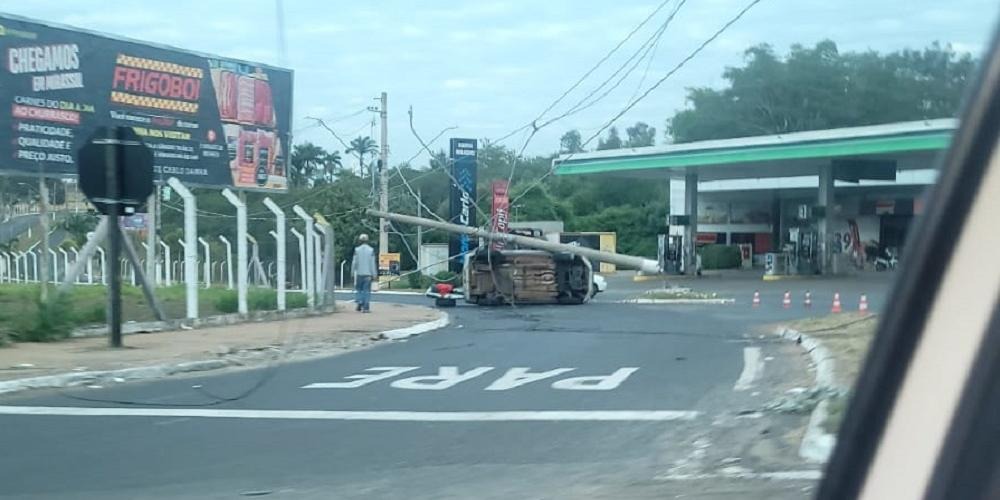 O motorista de um carro perdeu o controle da direção e bateu contra um poste de iluminação em Mirassol. Devido ao impacto, o poste caiu em cima do carro. O acidente aconteceu na manhã desta sexta-feira (5), na avendia Doutor Antônio Cândido Moreira.