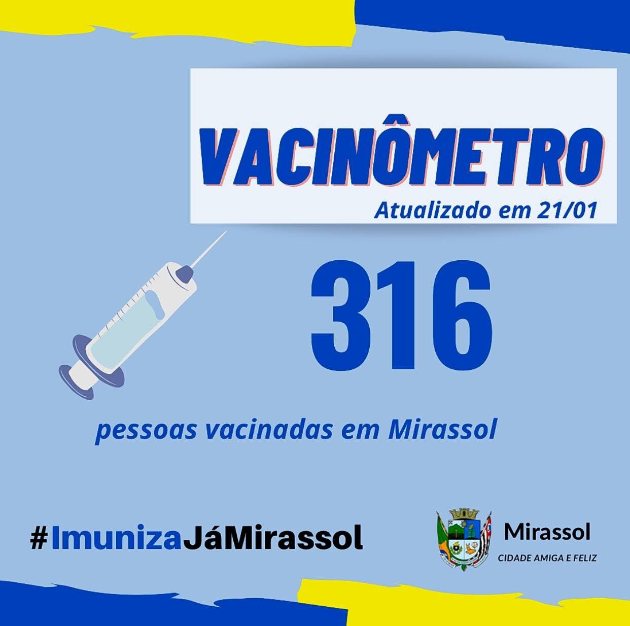 O Departamento Municipal da Saúde de Mirassol aplicou 316 doses da CoronaVac, vacina que imuniza contra o novo Coronavírus. A atualização é desta quinta-feira (21). Foram imunizados os trabalhadores da área da saúde e que estão na linha de frente no combate à Covid-19.