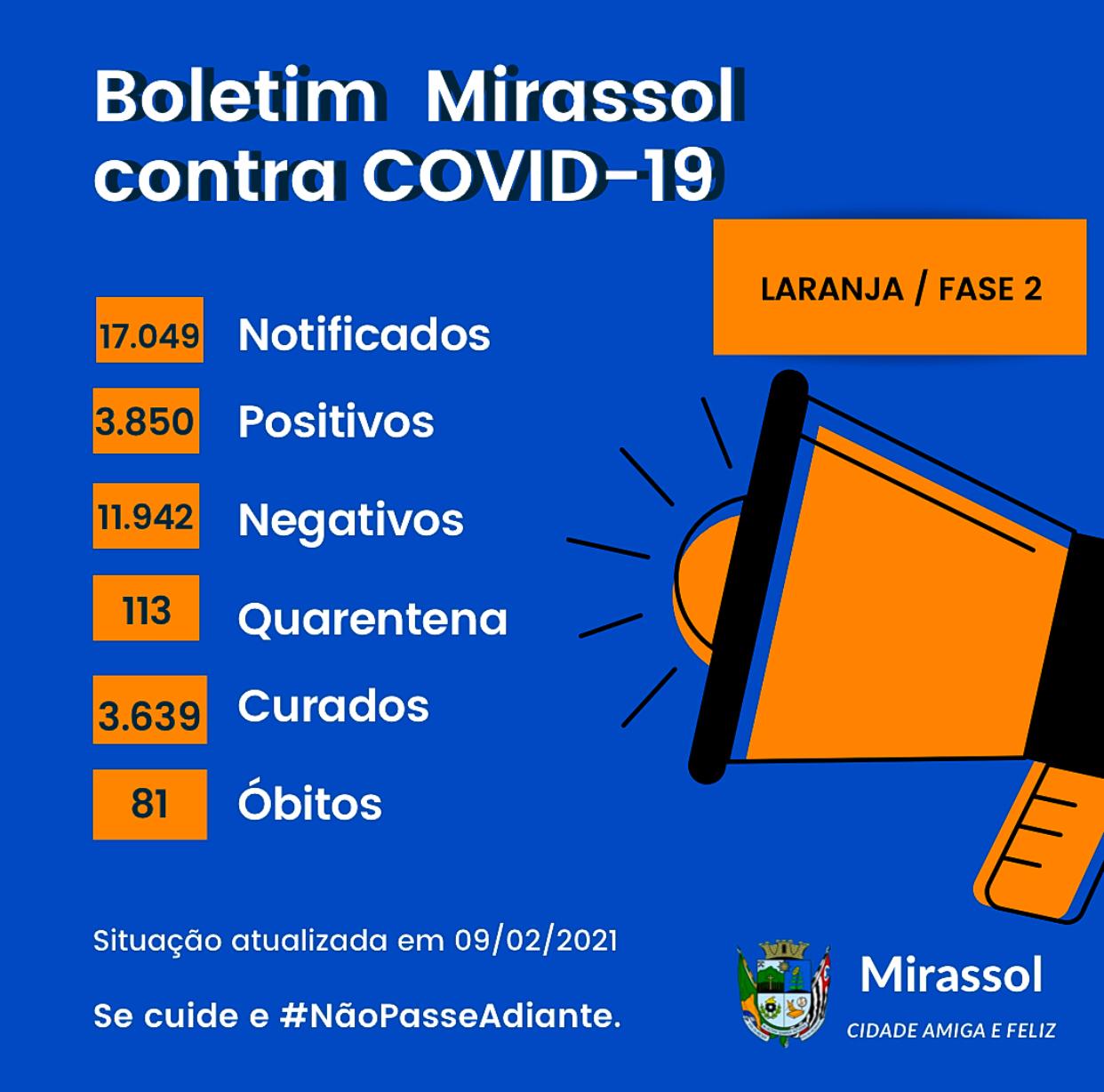Com isso, o município contabiliza 17.049 notificações, sendo 3.850 positivos, 11.942 negativos, 3.639 curados, 113 em quarentena e 81 óbitos.
