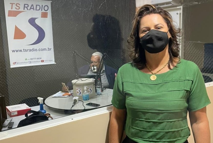 Foto: A prefeita de Jaci, Valéria Guimarães, em entrevista ao programa Pinga-Fogo, da TS Rádio. (Imagem: Odair Nery/TS Rádio)