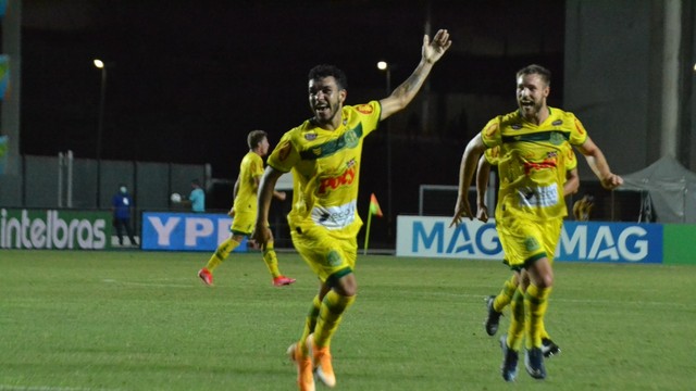 Moraes comemora segundo gol do Mirassol na partida da Copa do Brasil (Foto: Léo Roveroni/Agência Mirassol)