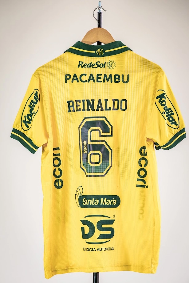 Confeccionada em tecido dryon, a camisa traz gola polo em retilínea com acabamento aplicado também nas mangas e nas barras dos calções. Os detalhes em verde, acompanhados por uma linha em amarelo, valorizam o conjunto, que tem o amarelo como cor predominante. A peça conta ainda com as letras MFC bordadas na parte externa da nuca, reforçando a identidade do clube.