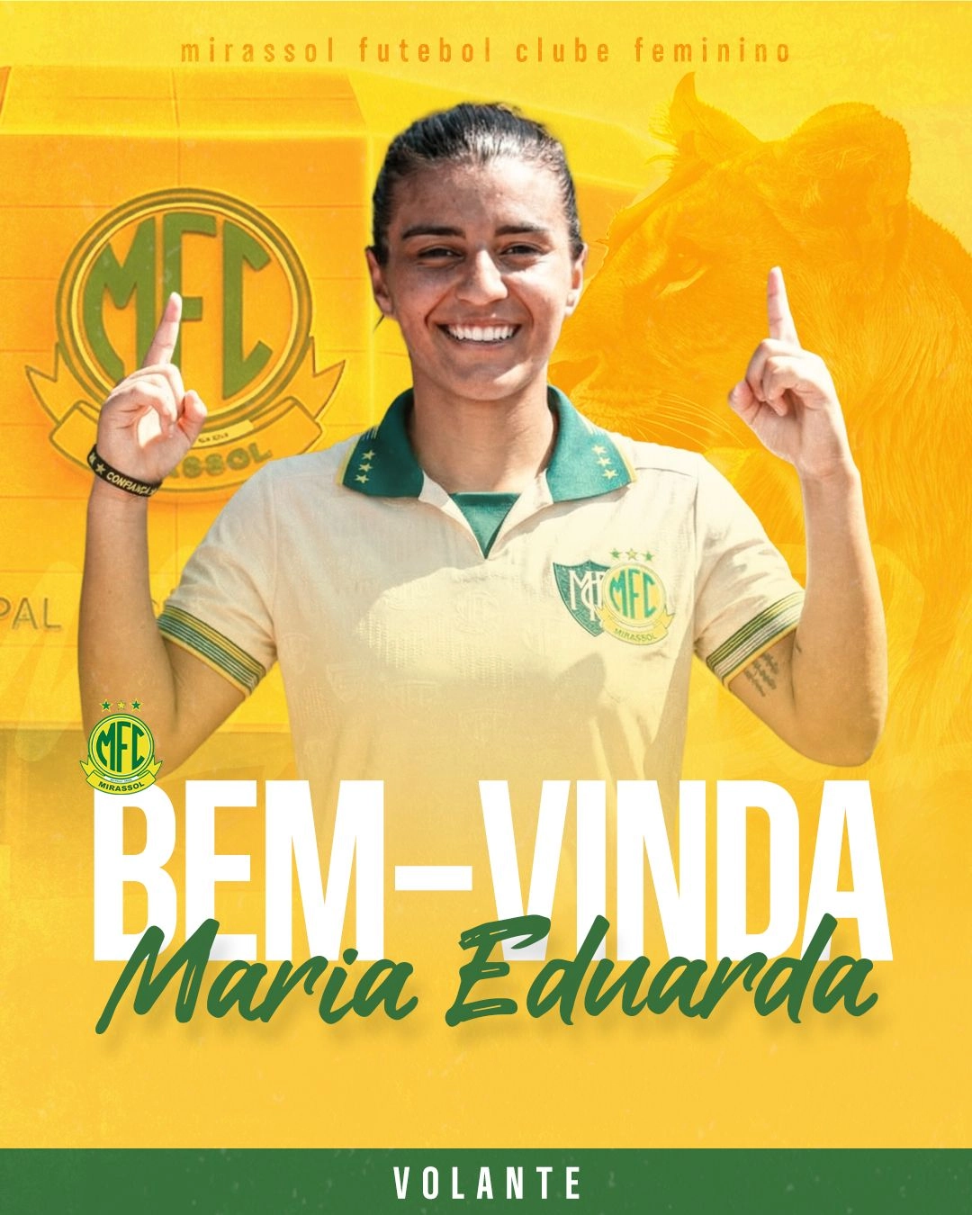 Para o meio-campo, o Mirassol acertou com a volante Duda Batista, de 23 anos. Revelada pelo São José, ela também acumula passagens por Ferroviária, Fluminense e Atlético-MG, sendo o Fortaleza seu último clube antes de chegar ao Mirassol.