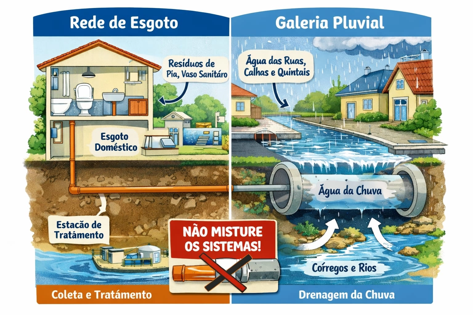 A separação entre os dois sistemas é essencial para garantir eficiência, segurança e evitar sobrecarga nas tubulações.